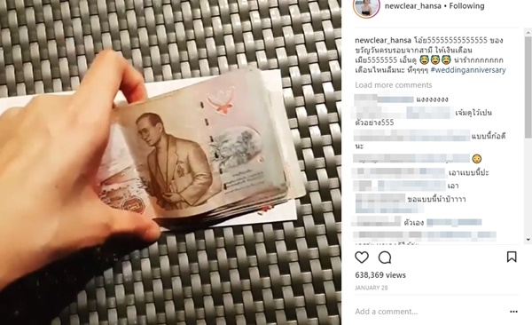 ดีเจเพชรจ้า เผยที่มา ทำงานอะไรถึงรวยนักรวยหนา หาเงินได้เดือนละล้านบาท ล่าสุดฉลองแต่งงานก็สัญญาจะมีเงินเดือนให้เมียอีก อิจฉาจริงเชียว นับตั้งแต่ที่ดีเจเพชรจ้า และนิวเคลียร์ หรรษา แต่งงานกันแล้ว ก็ดูเหมือนว่าดีกรีความหวานของทั้งคู่ จะเพิ่มขึ้นแบบฉุดไม่อยู่ โดยเฉพาะที่ล่าสุด (13 กุมภาพันธ์ 2561) ดีเจเพชรจ้า ได้ทำเซอร์ไพรส์นิวเคลียร์ ด้วยการมอบเงินค่าขนมให้เดือนละ 30,000 บาททุก ๆ เดือน เนื่องในโอกาสครบรอบการฉลองแต่งงาน 1 ปี