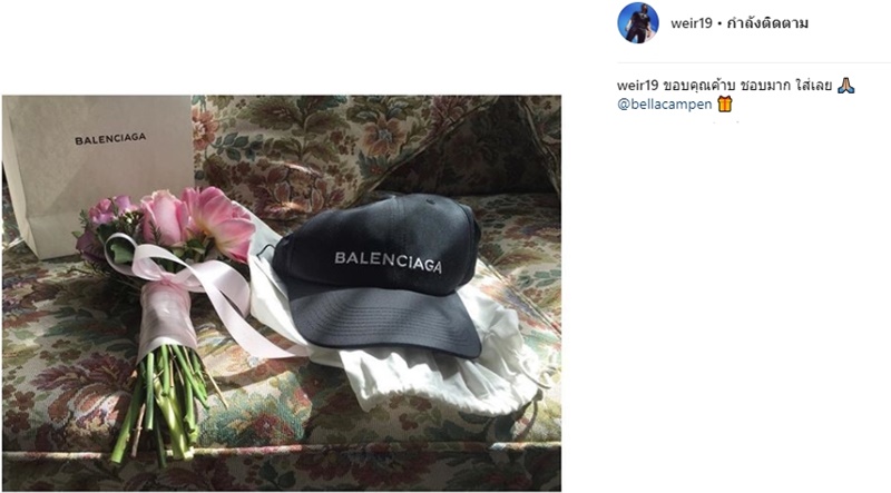 ซึ่งหนุ่มเวียร์ ได้โพสต์ภาพของขวัญวาเลนไทน์จากเบลล่าที่มอบหมวกเท่ ๆ และช่อดอกไม้น่ารัก ๆ มาให้ ขณะที่สาวเบลล่า ก็ได้เผยภาพของขวัญจากหนุ่มเวียร์แล้ว เป็นดอกกุหลาบแสนสวยช่อโตยิ่งใหญ่อลังการงานสร้างมาก ใหญ่จนกลัวว่าสาวเบลล่าจะแบกไม่ไหวเลยทีเดียว