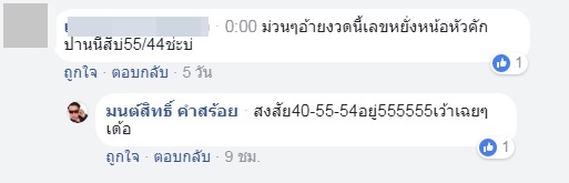 โดยก่อนหน้านี้เมื่อมีคนมาถามเลขเด็ดว่า 55 / 44 ใช่หรือไม่ มนต์สิทธิ์ คำสร้อย ก็ตอบกลับว่า "สงสัย 40-55-54 อยู่ 555555 เว้าเฉย ๆ" ส่วนเลขเด็ดงวดนี้ มนต์สิทธิ์ จะออกมาให้เลขอะไรแบบชัด ๆ หรือไม่ ต้องรอติดตามกันค่ะ !!