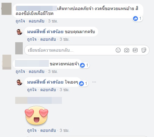 หลังจากดวงเฮง ถูกลอตเตอรี่ติด ๆ กันหลายงวด แถมมาแบ่งปันความโชคดี บอกเลขเด็ดให้กับแฟน ๆ ผ่านเฟซบุ๊ก ก็ทำเอานักร้องลูกทุ่งชื่อดัง มนต์สิทธิ์ คำสร้อย ทวีความฮอตยิ่งขึ้นไปอีก โดยเฉพาะช่วงใกล้หวยออก ที่มีคนเข้ามาคอมเมนต์กันรัว ๆ รอติดตาม ขอเลขเด็ดกันเพียบ