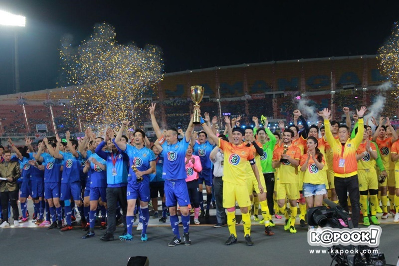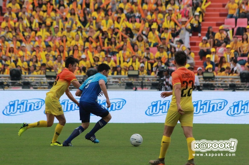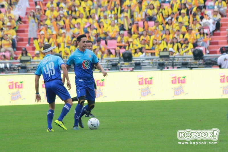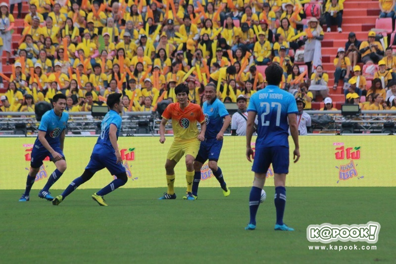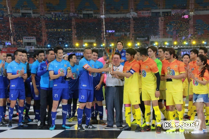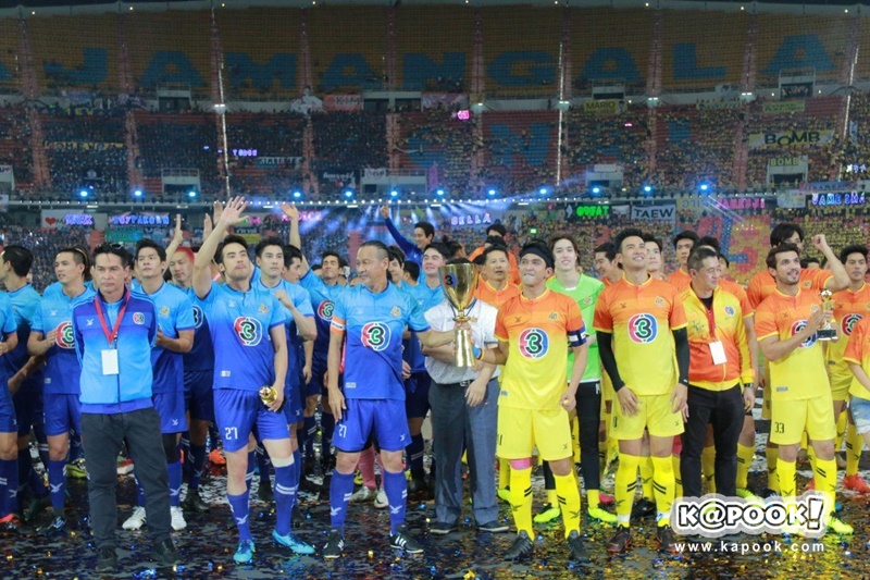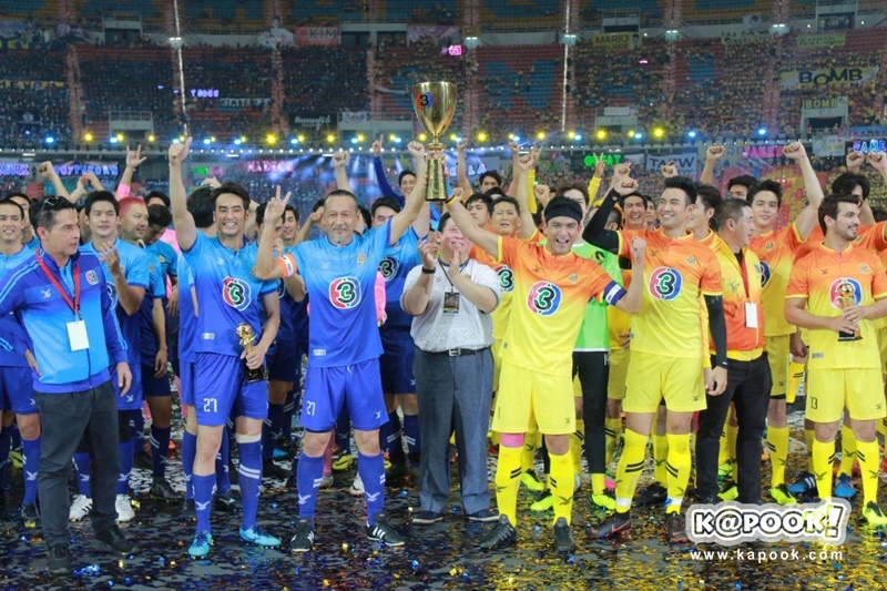 ซึ่งผู้ที่เตะเข้าเป็นประตูแรกให้กับทีมสีน้ำเงินก็คือ นาย ณภัทร ส่วนทีมสีเหลืองก็ได้ เจมส์ มาร์ เป็นผู้พาตีเสมอ จากนั้นทั้ง 2 ทีมก็ต่างผลัดกันเตะเข้า จนจบเกมส์เสมอกันที่ 6-6 ทำให้ต้องมีการยิงจุดโทษ และผลสรุปในปีนี้เสมอกัน 11-11 ทั้ง 2 ทีม ครองแชมป์ร่วมกัน