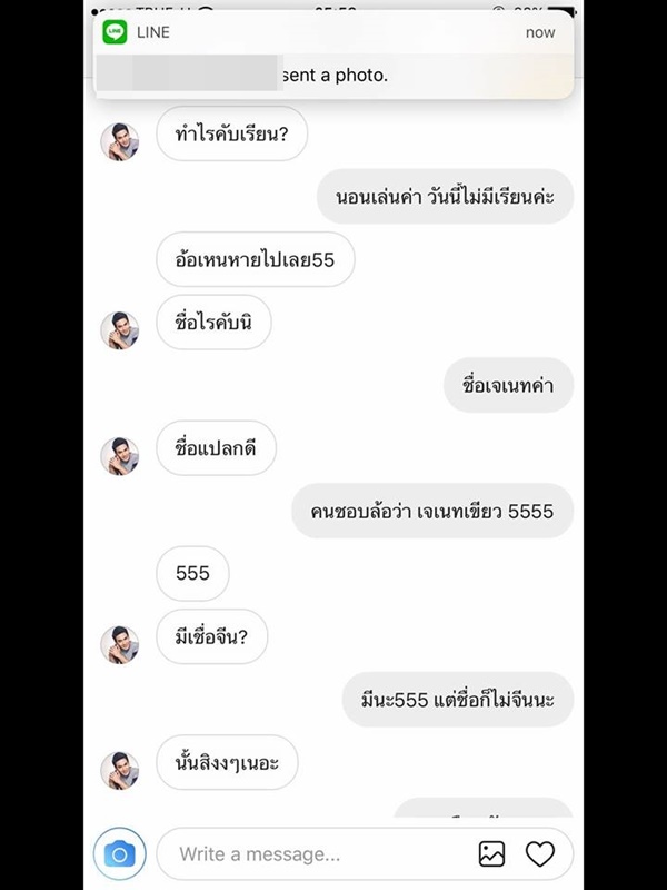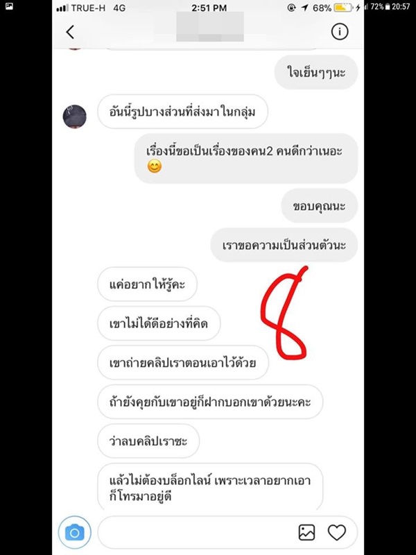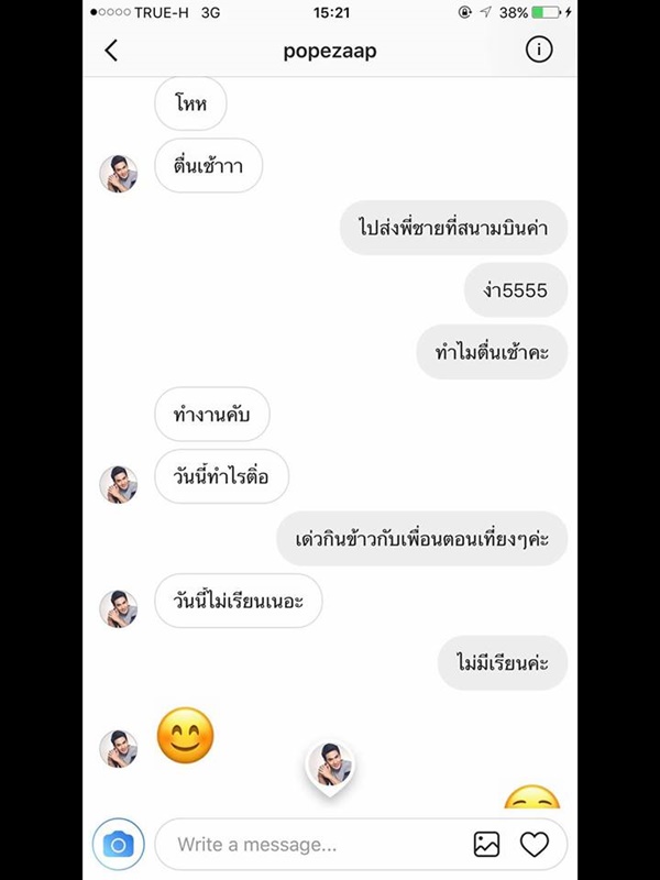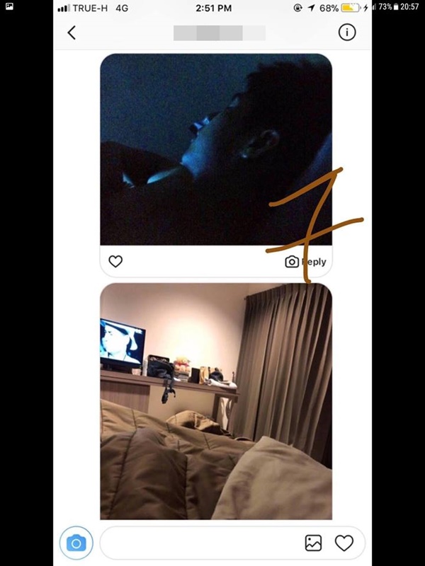 ซึ่งภาพที่ถูกแฉเป็นภาพพระเอกหนุ่มขณะนอนหลับและภาพถ่ายภายในห้องพัก นอกจากนี้ยังมีข้อความแชทที่เป็นชื่ออินสตาแกรมของโป๊ปทักคุยกับฝ่ายหญิงด้วย โดยบอกว่ามีผู้หญิงโดนหลอกให้มีอะไรด้วยมาหลายคนแล้ว แถมบางคนโดนถ่ายคลิปวิดีโอไว้ด้วย