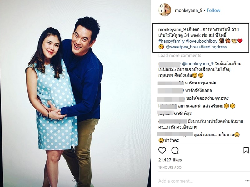 ล่าสุด (20 มีนาคม 2561) สาวแอนได้โพสต์ภาพเบื้องหลังที่เจ้าตัวควงแขนคุณสามีมาถ่ายแบบเพื่อเก็บไว้ให้น้องโพธิ์ตอนโต พร้อมกับระบุข้อความเอาไว้ว่า เก็บตกการทำงานวันนี้ ถ่ายไว้ให้ลูกดู พ่อ แม่ พี่โพธิ์