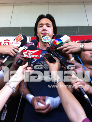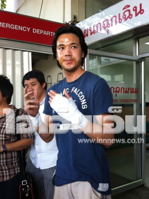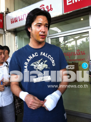 "ก็ที่เจ็บที่สุดก็คือตรงแขน จริงๆ มันก็ไม่ได้เยอะไปกว่าหน้า แต่มันแดงกว่า หมอก็บอกต้องดูพรุ่งนี้ว่ามันจะพองไหม มันเหมือนเป็นแผลถูกไฟไหม้ ส่วนอาการของเพื่อนผมที่โดนตรงหลังก็ไหม้หลังนิดเดียว เขาไม่ใช่คนไทย ผมเลยไม่อยากให้เขามายุ่งอะไรเท่าไหร่"แดน ดนัย กล่าว