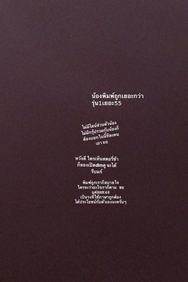 งานนี้ก็มีแฟนคลับบางส่วนมองว่าการมาโพสต์เตือนรุ่นน้องผ่านโซเชียลแบบนี้ เป็นการหักหน้าหรือข่มรุ่นน้องหรือเปล่า ทำไมจึงไม่เตือนแบบส่วนตัว ซึ่งต่อมา เจนนิษฐ์ BNK48 ก็ลงข้อความเพิ่มเติมใน IG Story ว่า "น้องพิมพ์ถูกเยอะกว่ารุ่น 1 เยอะ 55 ไม่มีไลน์ส่วนตัวน้อง ไม่มีกรุ๊ปรวมกับน้องก็ต้องบอกในนี้ทีละคนเอา ถถ หวังดี ใครเห็นสตอรี่ข้าก็ลองเปิด dm ดู จะได้รีบแก้ พิมพ์ถูกเราก็สบายใจ ใครจะว่าอะไรเราก็ตาม ขอแค่ BNK48 เป็นวงที่ใช้ภาษาถูกต้อง ได้ประโยชน์กับตัวเองนะครับ ๆ"