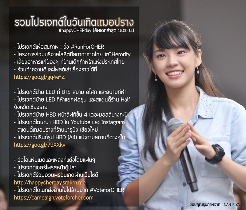 แฟนคลับ เฌอปราง BNK48 ทุ่มจัดเต็มอวยพรวันเกิดด้วยการขึ้นป้าย LED - ป้ายโฆษณาหลายจังหวัด พร้อมทั้งร่วมบริจาคเงิน-เลี้ยงอาหารบ้านเด็กกำพร้าแห่งประเทศไทยในนาม เฌอปราง