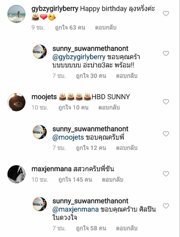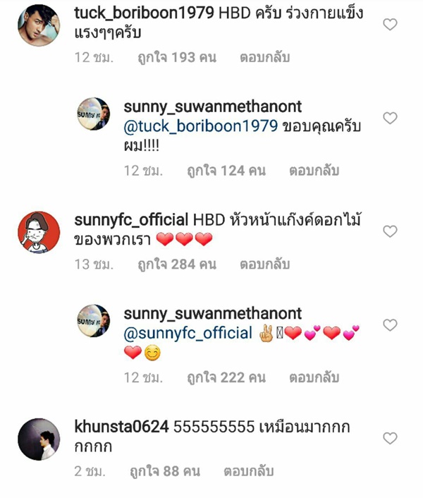 ศิลปินดาราอีกหลายคน ที่เข้ามาคอมเมนต์อวยพรหนุ่มซันนี่ใน IG อีกด้วย