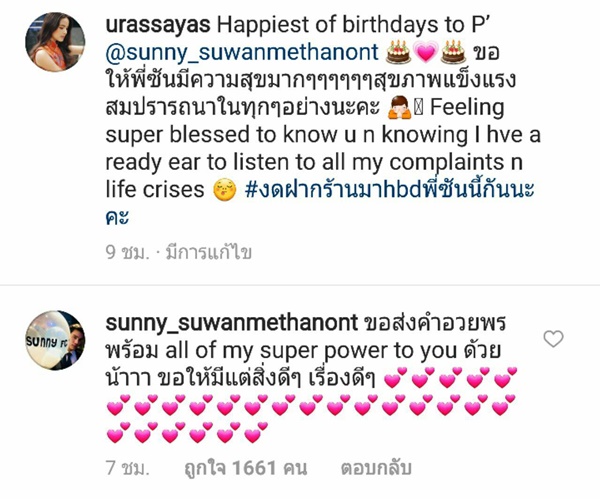 ก็ได้โพสต์ข้อความอวยพรวันเกิดของซันนี่อย่างน่ารัก นอกจากนี้ยังมีเพื่อน ๆ