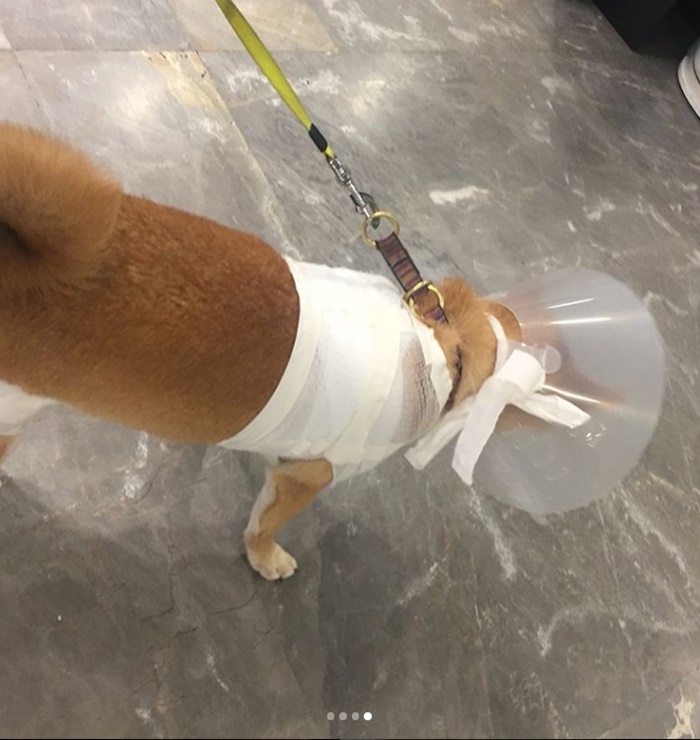 จนได้รับบาดเจ็บ ซึ่งเจ้าตัวได้รีบพาน้องหมาไปหาหมอแล้ว