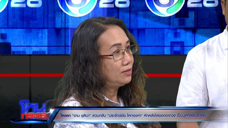อาม ชุติมา : หนูเคยได้ยินเขาพูดแบบนั้น ก็อาจเป็นการเข้าใจผิดของหนู เพราะเขาก็บอกตลอดว่าไม่มีใครมาฟ้องอะไรเขาได้ เพราะเขาไม่มีอะไรให้ฟ้อง หนูเข้าใจผิด หนูก็ขอโทษอาจารย์ด้วยค่ะ หนูก็เข้าใจอย่างนั้นตลอด เพราะเขาพูดบ่อยมาก