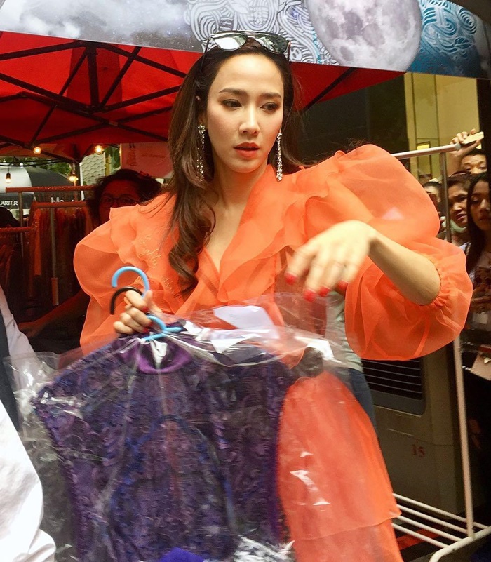 มิถุนายน 2561) เจ้าตัวขนเสื้อผ้าแบรนด์เนมมาขายมือสองที่งาน Absolutely