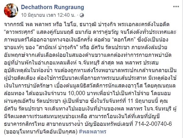ภาพจาก เฟซบุ๊ก Dechathorn Rungraung