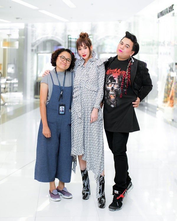 อั้ม : น้องฉัตร (ช่างแต่งหน้า) เปลี่ยนลุคให้ค่ะ เดินหัวทิ่มออกจากบ้าน ไม่เคยชินค่ะ ด้วยรองเท้า ด้วยผม จริง ๆ งานนี้เขาอยากให้แต่งตัวแบบงานที่แล้ว ที่ออกสปอร์ต ๆ หน่อย ก็บอกเขาว่าแต่งไปแล้ว เดี๋ยวจะหาที่ใกล้เคียงแล้วกัน ก็ได้ลุคนี้มาค่ะ