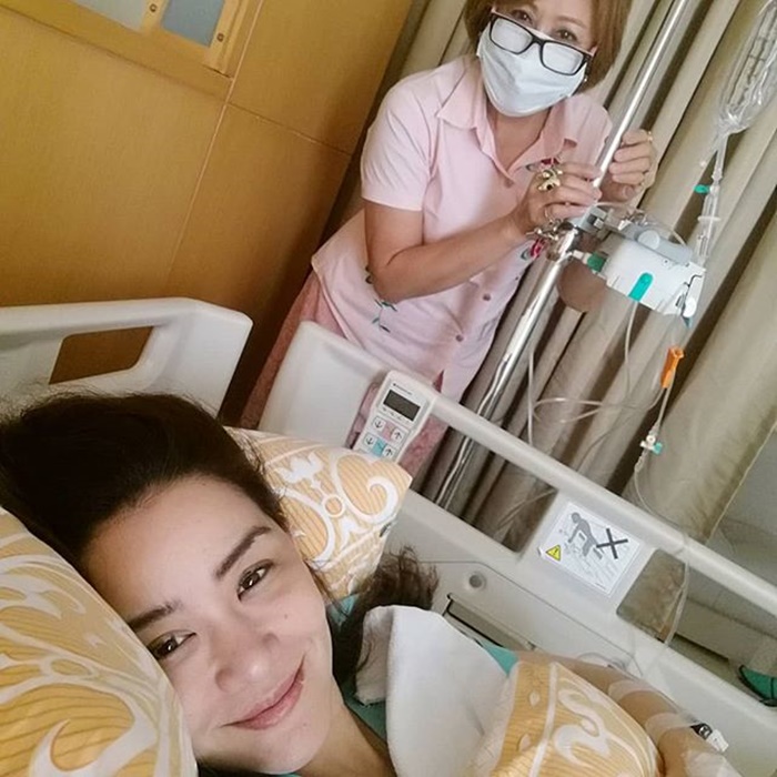 เจ้าตัวได้ออกมาโพสต์ภาพตัวเองขณะนอนรักษาตัวอยู่ในโรงพยาบาล