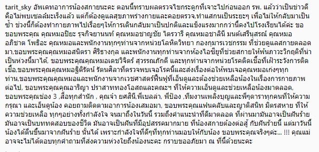 สำหรับข้อความทั้งหมดจากคุณแม่น้องสกาย มีดังนี้..