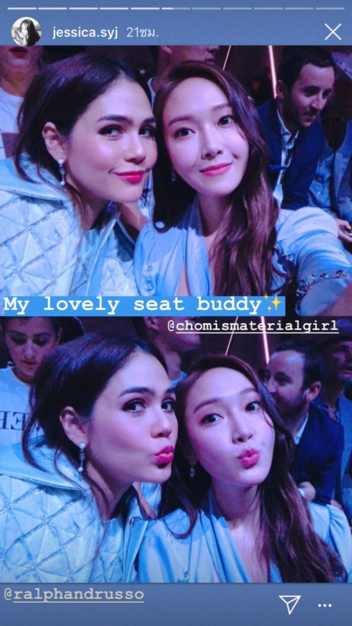 เจสสิก้า อดีตสมาชิกวง Girls\' Generation อัปไอจีสตอรี่นั่งข้าง ชมพู่ อารยา ในงานแฟชั่นโชว์ชั้นสูง Paris Haute Couture Fashion Week 2018 ที่ประเทศฝรั่งเศส