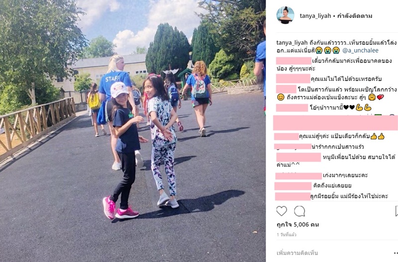 งานนี้แม่ธัญญ่า พ่อเป็ก ลงอินสตาแกรมบ่นรัว ๆ ด้วยความคิดถึงลูกสาวสุดที่เลิฟ โดยบอกว่า "มาส่งลูกส่งหลานเรียนซัมเมอร์..ส่งเสร็จแล้ว กลับถึงโรงแรมยังทำใจไม่ได้ พรุ่งนี้ว่าจะไปรับกลับ"