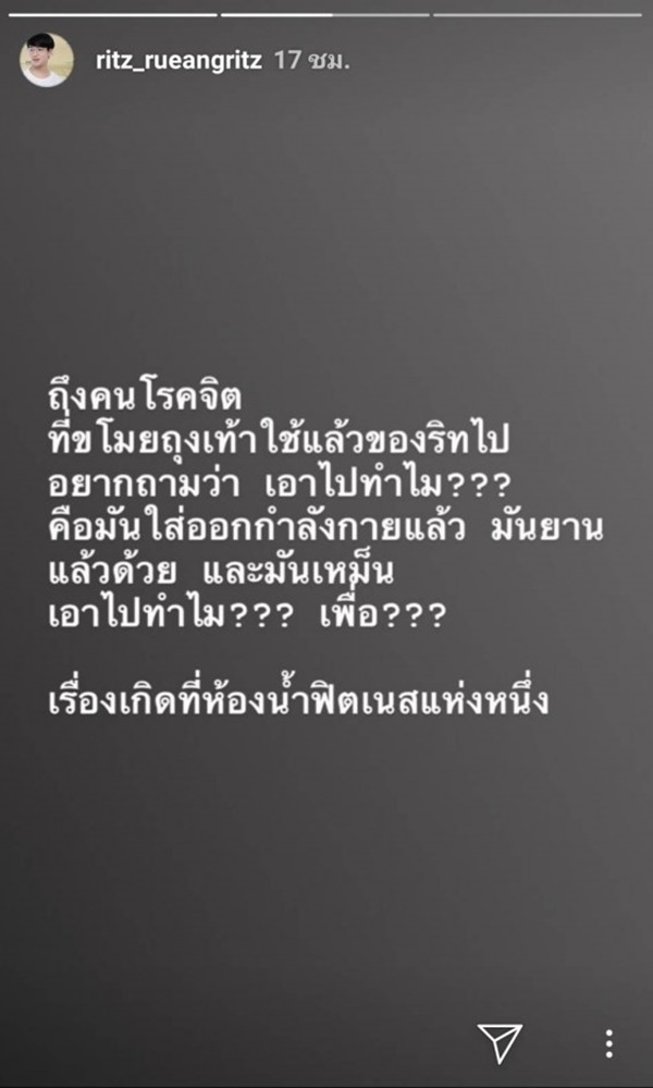 หมอริท เรืองฤทธิ์ เจอความแซ่บทำพิษโพสต์ระบายถามโรคจิต หลังโดนขโมยของใช้ส่วนตัวในฟิตเนส ลั่นเอาไปทำไม ไม่เหม็นเหรอ