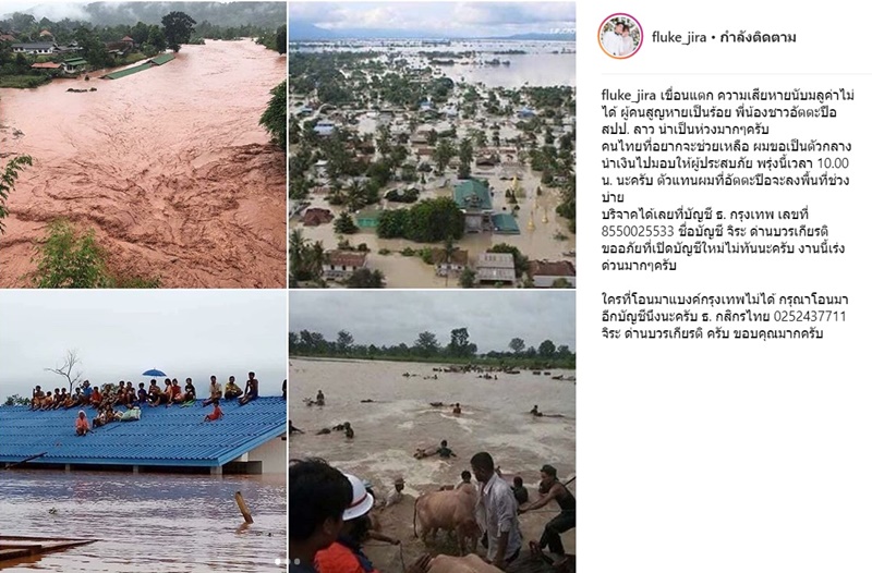 ฟลุค จิระ พร้อมภรรยาชาวลาว แอปเปิ้ล สีสะเหงียน เปิดระดมเงินบริจาคช่วยพี่น้อง สปป.ลาว ที่ประสบภัยเหตุเขื่อนแตก เผยได้เงินกว่า 200 ล้านกีบแล้ว