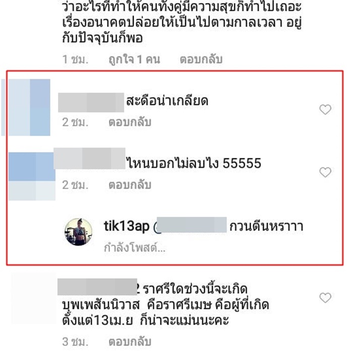 บ้างก็เข้ามาบอกสาวติ๊กว่าให้ใจเย็น อย่าไปสนใจกับคอมเมนต์ป่วนพวกนี้เลย