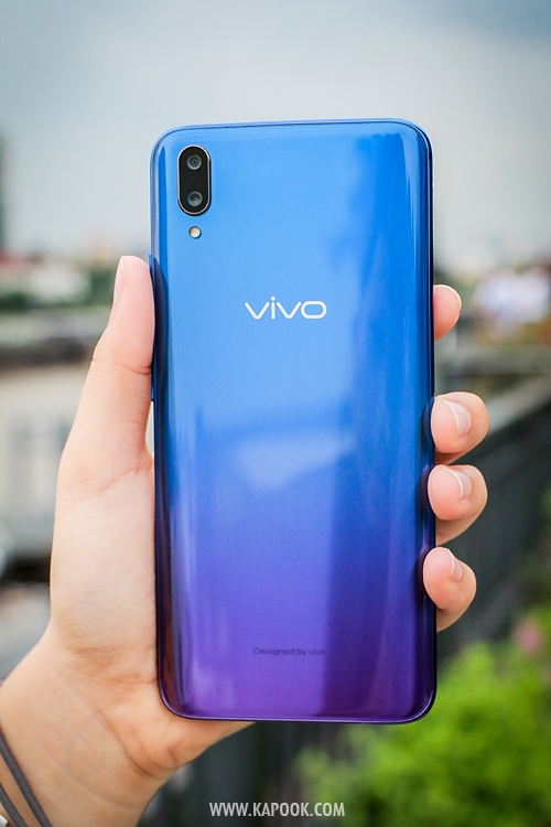 Vivo V11 สี Nebula ไล่ระดับสีจากน้ำเงิน-ม่วง (มี 2 สีให้เลือกค่ะ คือ Starry Night และ Nebula)