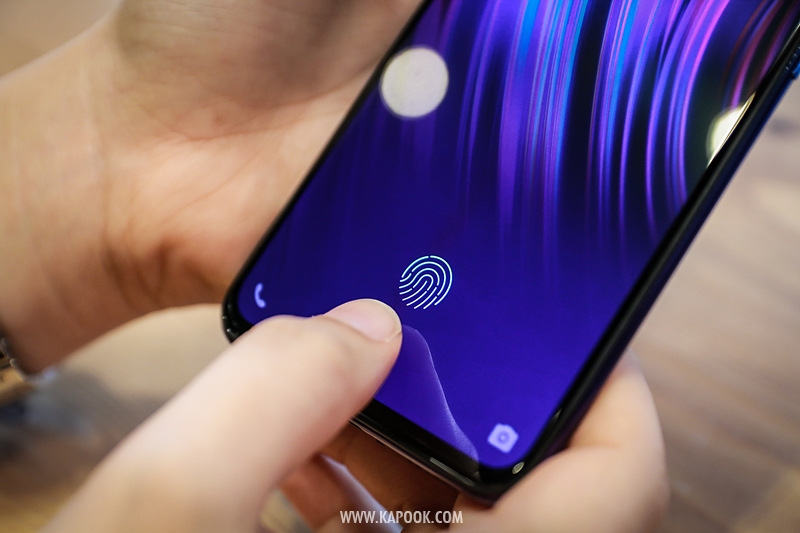 และอีกหนึ่งเทคโนโลยีที่สำคัญของ Vivo V11 เครื่องนี้คือ In-Display Fingerprint Scanning หรือระบบสแกนนิ้วบนหน้าจอ ที่ช่วยให้การใช้งานสะดวกสบาย และปลอดภัยมากยิ่งขึ้น