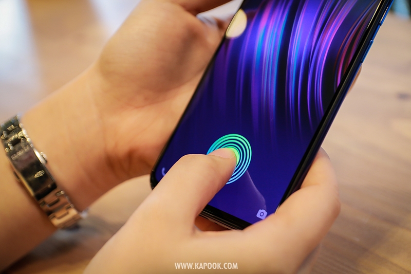 เพียงแตะนิ้วที่กราฟฟิกลายนิ้วมือบนหน้าจอ ก็จะสามารถปลดล็อกตัวเครื่องได้อย่างรวดเร็วและปลอดภัยมากยิ่งขึ้น แถมยังมาพร้อมโหมดปลดล็อกใบหน้าด้วยแสงอินฟราเรดที่จะช่วยจับใบหน้าให้แม่นยำมากยิ่งขึ้นถึง1,024 จุด ถึงแสงจะน้อย แต่ก็ไร้ปัญหา