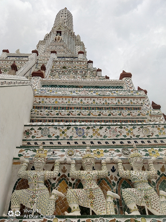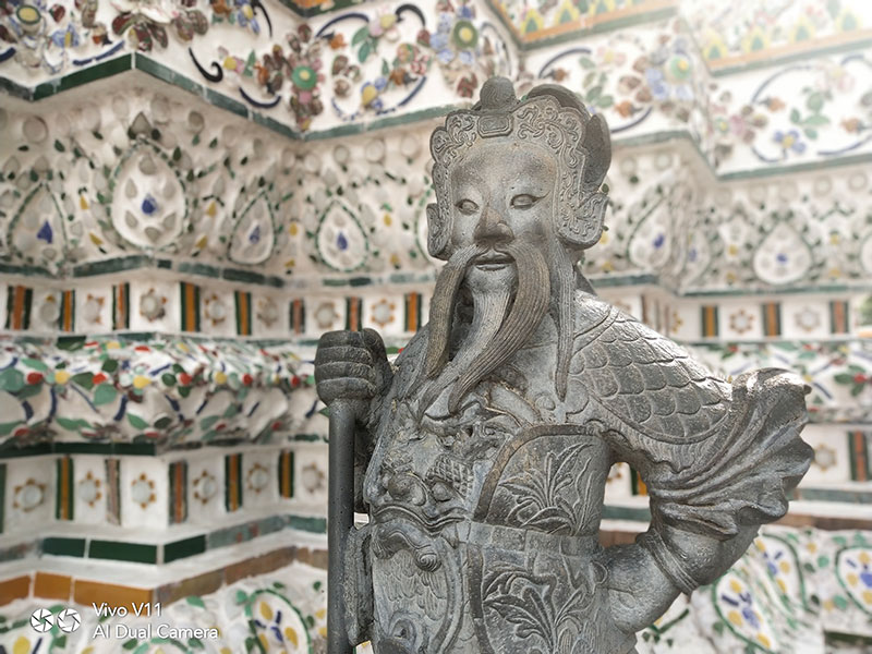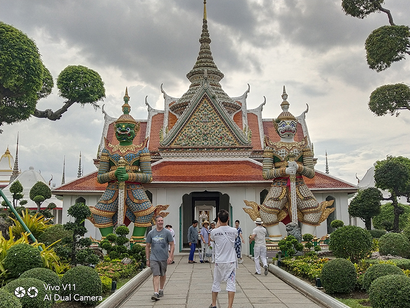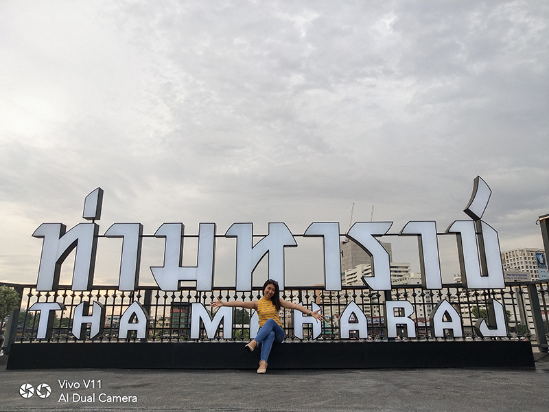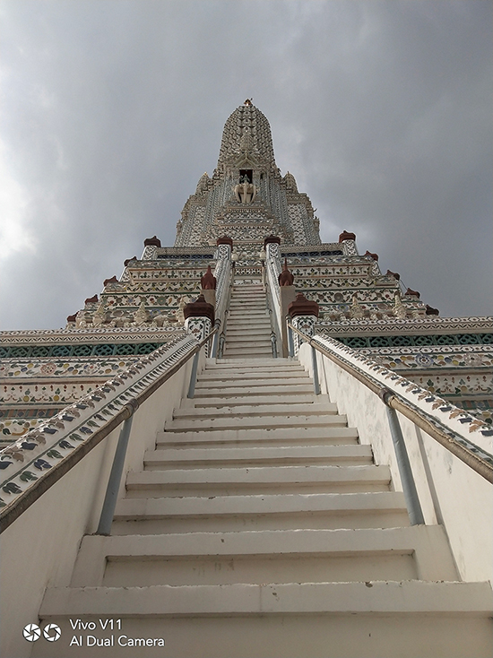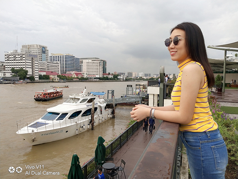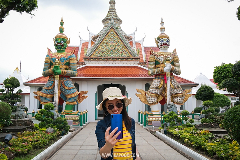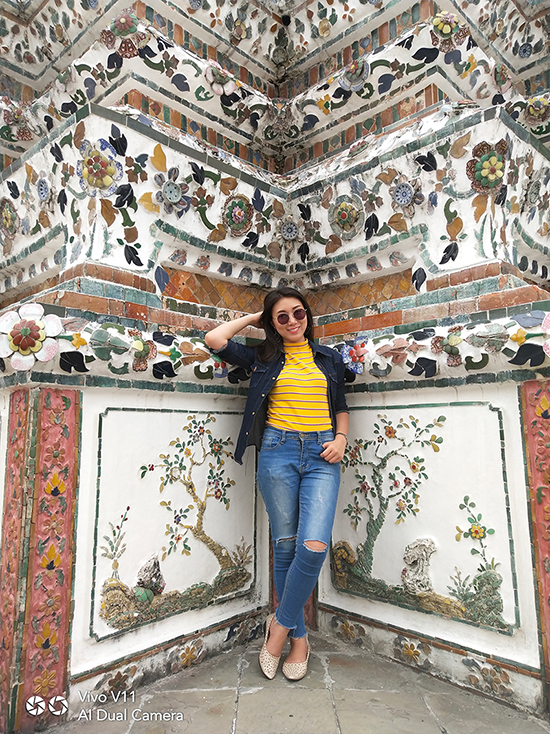 เมื่อเราเดินทางมาถึงวัดอรุณฯ วันนี้อากาศแจ่มใสเป็นใจให้เรามาถ่ายมาก ๆ แต่ถึงให้แสงน้อยแสงหมดยังไงเราก็ไม่กลัว ไหน ๆ ก็มาถึงแล้วคงต้องขอเซลฟี่กันสักหน่อย กล้องหน้าของ Vivo V11 เครื่องนี้ มีความละเอียดถึง 25 ล้านพิกเซล ! ห้ะ ! อะไรนะ ? ใช่แล้วค่ะ ไม่ได้เขียนผิดเลยสักนิด มาพร้อมเทคโนโลยี AI ที่ช่วยให้การเซลฟี่ของเราสวยใสคมชัดอย่างแน่นอน