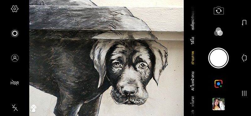 นี่ขนาดถ่ายภาพวาดน้องหมาสีดำบนกำแพง Vivo V11 ก็ยังรู้เลยว่า เรากำลังจะถ่ายหมาด้วย