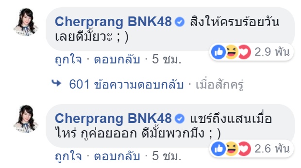 ก่อนที่ต่อมาจะปล่อยคืนเฟซบุ๊กให้สาว เฌอปราง BNK48 กลับมาเล่นเอง