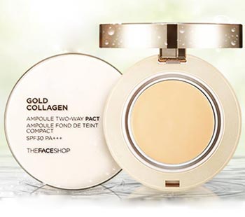 4. The Face Shop Gold Collagen Ampoule Two Way Pact