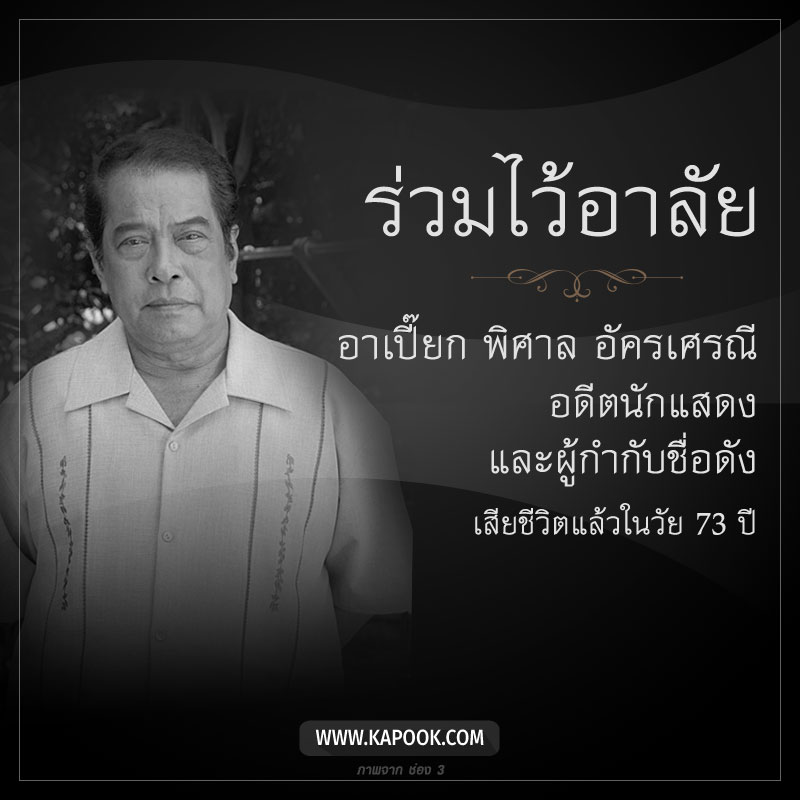 พิศาล อัครเศรณี เสียชีวิตแล้วในวัย 73 ปี จากอาการหัวใจวาย อัปเดตล่าสุด 4 ธันวาคม 2561 เวลา 10:40:41 178,731 อ่าน