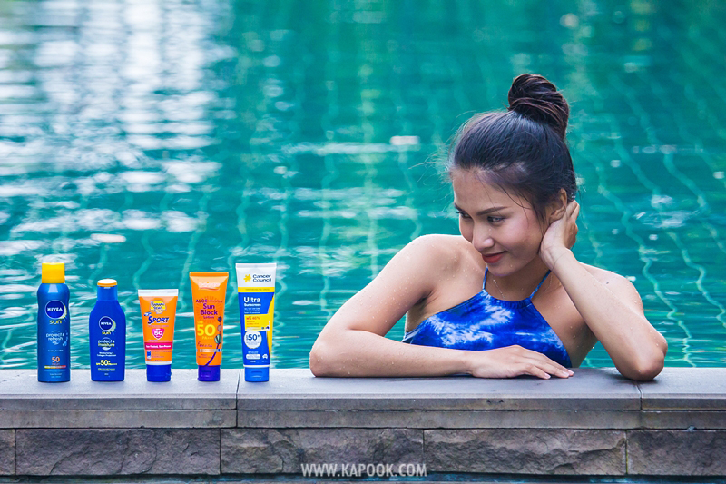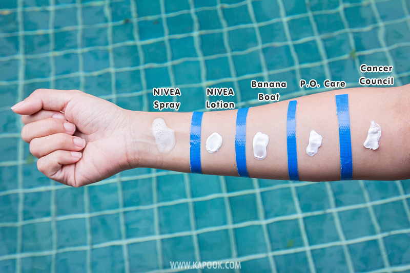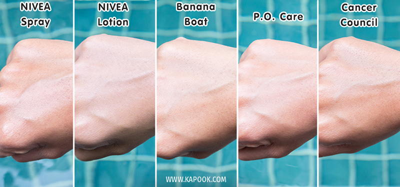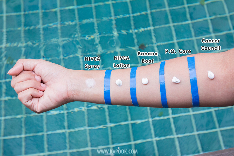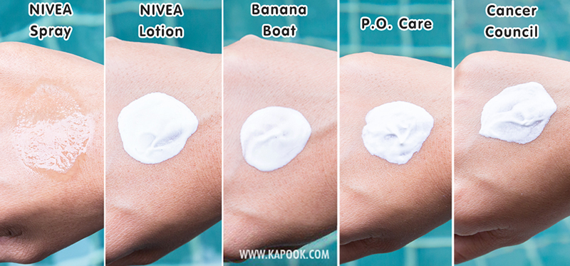 NIVEA Spray : ด้วยความที่เป็นสเปรย์ ถึงแม้จะกันน้ำได้ดี แต่คิดว่าเหมาะสำหรับกันเหงื่อในกิจกรรมกลางแจ้ง พวกกีฬาบนบกมากกว่าว่ายน้ำลุย ๆ แบบนี้ เพราะตัวสเปรย์คือเย็นจริงเย็นจัง ถ้าใช้หลังตากแดดมาร้อน ๆ ก็น่าจะรู้สึกสดชื่น สบายผิวดี แต่น่าจะต้องฉีดซ้ำกันบ่อยสักหน่อย ถ้าอยากให้กันแดดได้ยาวนานกว่านี้