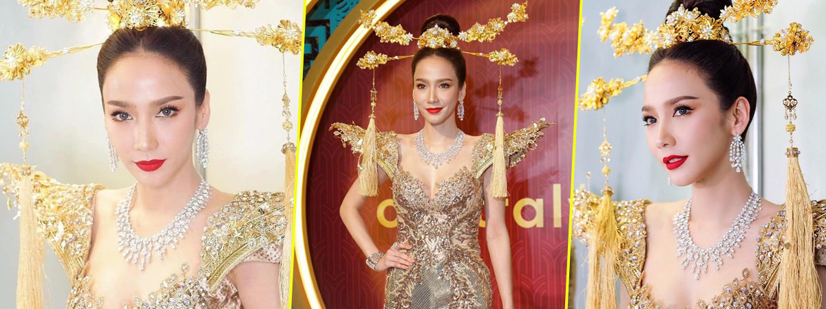 โดยที่อั้ม ได้แปลงโฉมออกมาสวยเป๊ะกับชุดสีทองเหลืองอร่าม เข้ากันได้ดีกับปีหมูทอง ดุจนางพญาแห่งวังหลวง พร้อมกับไฮไลต์คือเครื่องเพชรมูลค่ากว่า 88 ล้านบาท ที่ได้รับแรงบันดาลใจมาจากดอกเหมย ขับให้เธอดูโดดเด่นเปล่งประกายมากขึ้นไปอีก