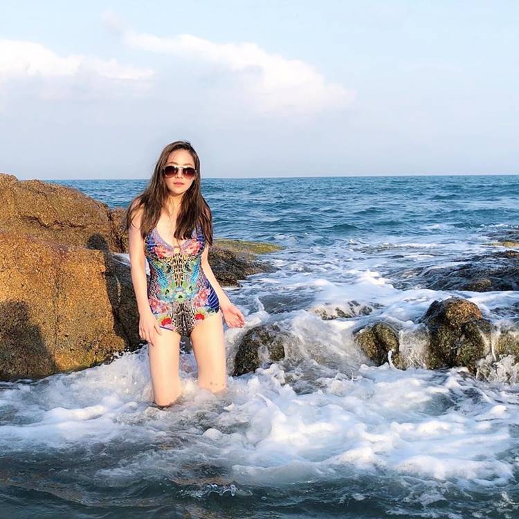 ลี นาตาลี เผยภาพในชุดว่ายน้ำลวดลายสุดเก๋ กับความขาวกระแทกตา โชว์เซ็กซี่ไม่มาก แต่สวยแซ่บสุดพลัง