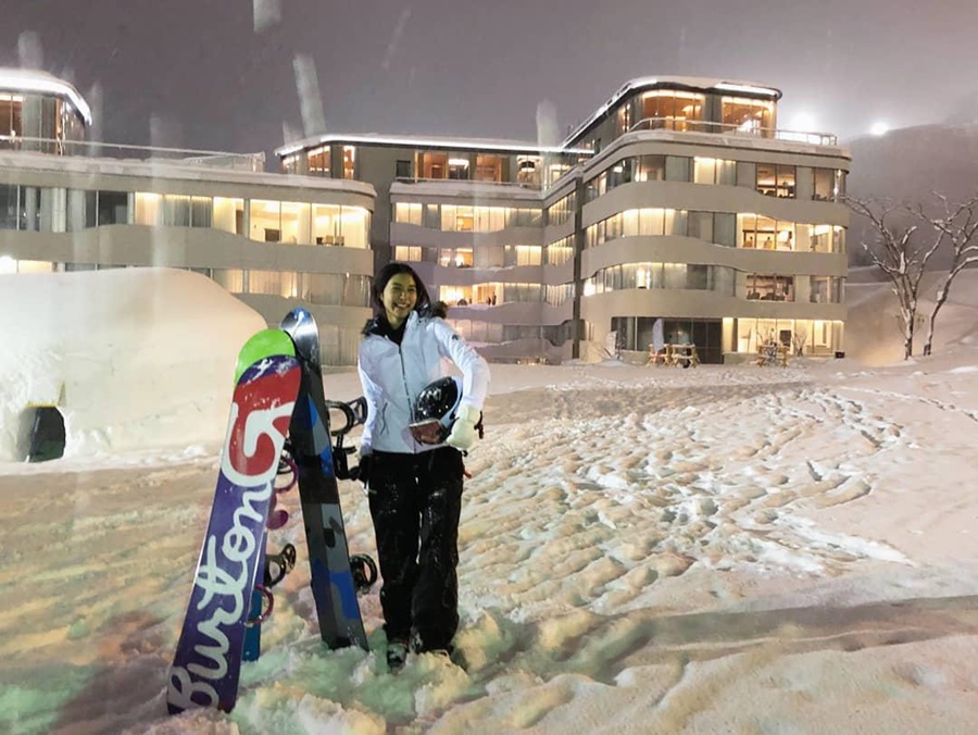 มิว : ดีค่ะ ก็น่ารักดูแลดี ไปเล่นสโนว์บอร์ดเขาก็ดูแลดีค่ะ จริง ๆ เขาเล่นเป็นอยู่แล้ว เขาก็เลยต้องมาเล่นกับมิวเล่นช้า ๆ มิวเล่นแล้วจะล้มบ่อยมาก ไม่ค่อยได้ไปไหน จะอยู่แต่ตรงลานเบบี๋ เขาก็จะมาเล่นอันนี้ด้วยกัน เขาก็ช่วยสอน จริง ๆ ก็จ้างเหมือนคนมาสอน เขาก็คอยช่วยแนะนำ ถ่ายน้ำหนักยังไงอะไรแบบนี้ค่ะ นอกจากนี้ก็ไปโตเกียวก็อยู่ในเมือง มีไปช้อปปิ้ง กินข้าว เดินเล่น แล้วไปนิเซโกะก็สโนว์บอร์ดอย่างเดียวเลยค่ะ