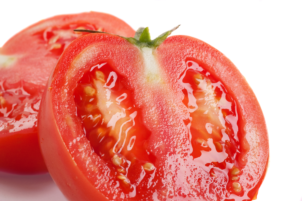 มะเขือเทศ เป็นของที่หาได้ง่ายในบ้านเรา ในมะเขือเทศมีปริมาณของวิตามินซีสูง ซึ่งช่วยแก้ปัญหาเรื่องสิวและทำให้ผิวกระจ่างใส ช่วยทำให้ผิวเย็นและกระชับรูขุมขนมี Curotenoid วิตามินหลากหลายชนิด น้ำมะเขือเทศสุกมีสาร Licopersioin มีฤทธิ์ฆ่าเชื้อราและแบคทีเรียช่วยรักษาสิวสมานได้ดี รวมถึงมีวิตามินเอซึ่งมีหน้าที่ในการสร้างผิวสุขภาพดี เป็นกรดธรรมชาติที่มี คุณสมบัติช่วยสร้างสมดุลให้กับผิว และช่วยกำจัดน้ำมันส่วนเกินออกไป สารต้านอนุมูลอิสระในมะเขือเทศนั้นช่วยต่อสู้กับอนุมูลอิสระต่าง ๆ โดยเฉพาะในเรื่องของผิวพรรณ เช่น ช่วยรักษาสิว