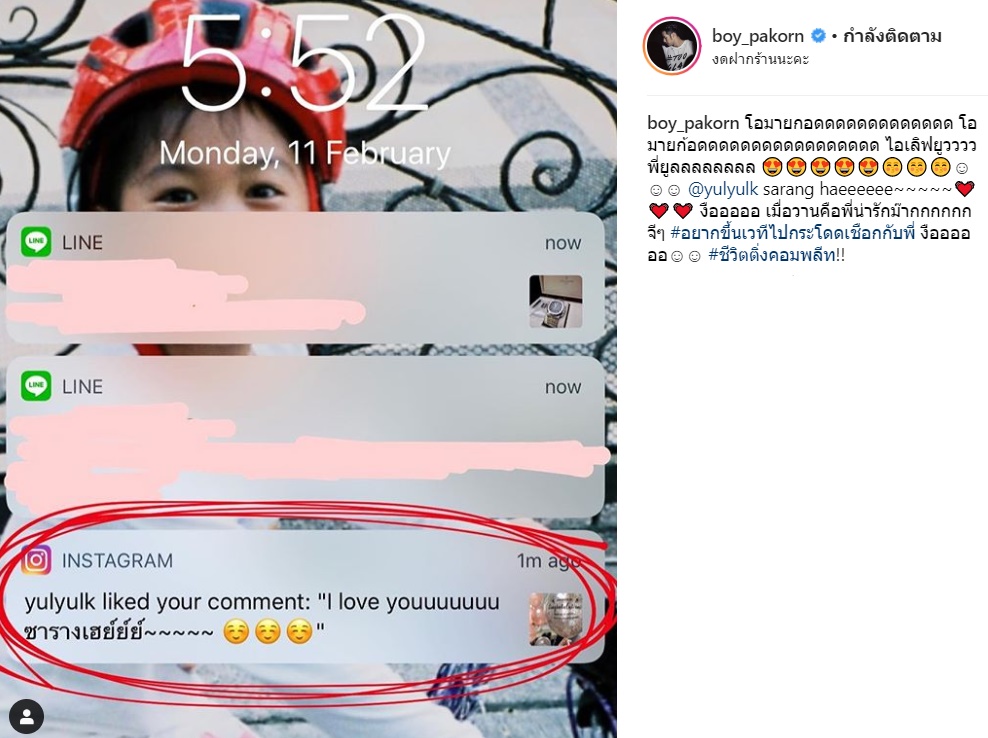 บอย ปกรณ์ ฟินที่สุดในชีวิต เมื่อ ยูริ Girls' Generation กดไลก์คอมเมนต์ I love you ซารางเฮ มิสชั่นติ่งคอมพลีตแล้ว