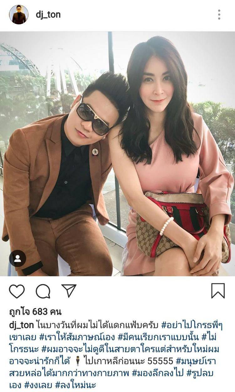 กระทั่งล่าสุด (12 กุมภาพันธ์ 2562) ดีเจต้น ก็ได้โพสต์ภาพคู่กับ ใหม่ สุคนธวา พร้อมเปิดใจเกี่ยวกับเรื่องดังกล่าวว่า "ในบางวันที่ผมไม่ได้แดกแฟ้บครับ #อย่าไปโกรธพี่ๆเขาเลย #เราให้สัมภาษณ์เอง #มีคนเรียกเราแบบนั้น #ไม่โกรธนะ #ผมอาจจะไม่ดูดีในสายตาใครแต่สำหรับใหม่ผมอาจจะน่ารักก็ได้ ไปเกาหลีก่อนนะ 55555 #มนุษย์เราสวยหล่อได้มากกว่าทางกายภาพ #มองลึกลงไป"