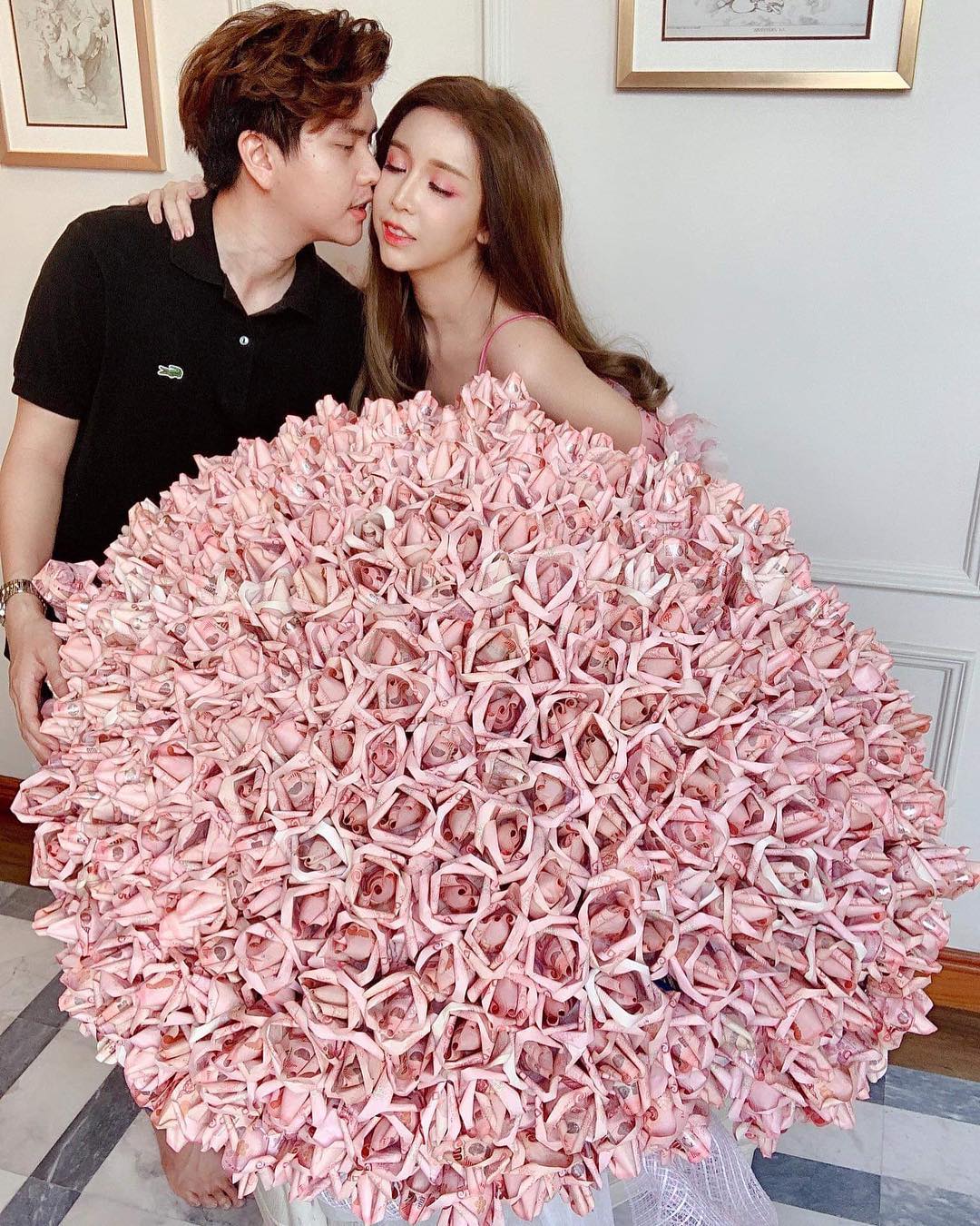ออฟฟี่ แม็กซิม อวดดอกไม้ช่อโตที่พับจากแบงก์ร้อย ของขวัญวันวาเลนไทน์จากสามี โดนชาวเน็ตรุมจวก เขารณรงค์ห้ามพับแบงก์โครม ๆ ไม่รู้บ้างเหรอ ? เป็นเน็ตไอดอลควรทำตัวเป็นตัวอย่างสังคม !