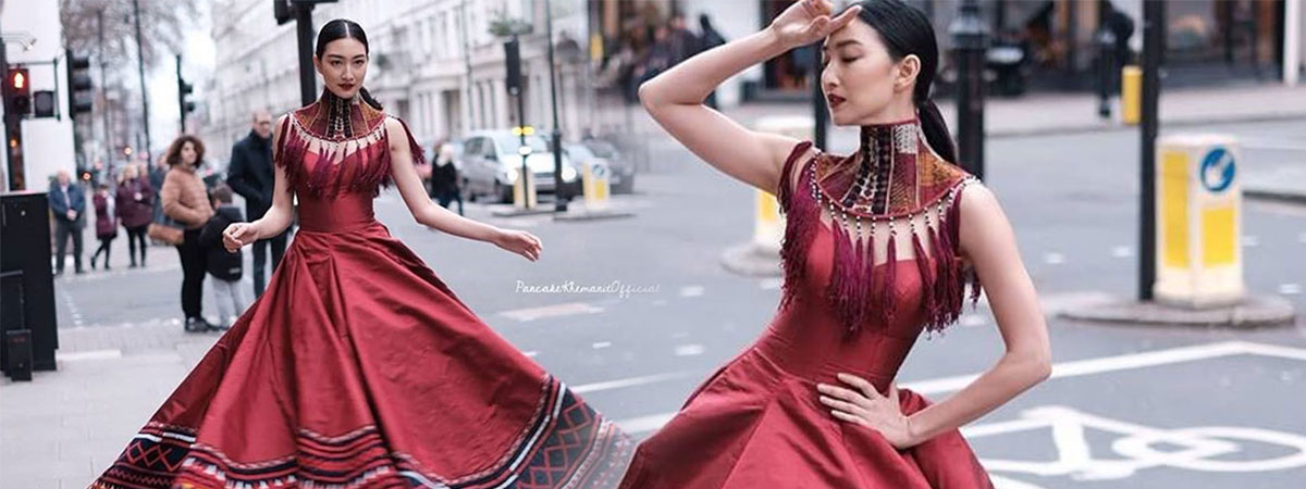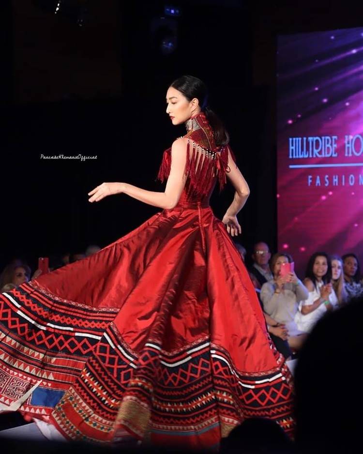 โดยงานนี้ สาวแพนเค้กได้สวมใส่ชุดผ้าไหมสีแดงเพลิง และผ้าปักม้งแดง ของแบรนด์ไทย HILLTRIBEHOUSE เดินโชว์ออกมาได้อย่างงดงามสง่า สร้างความตะลึงสะกดทุกสายตา พาแบรนด์ไทย พร้อมวัฒนธรรมไทยไปเฉิดฉายให้ชาวโลกได้เห็นกันอย่างทั่วถึง