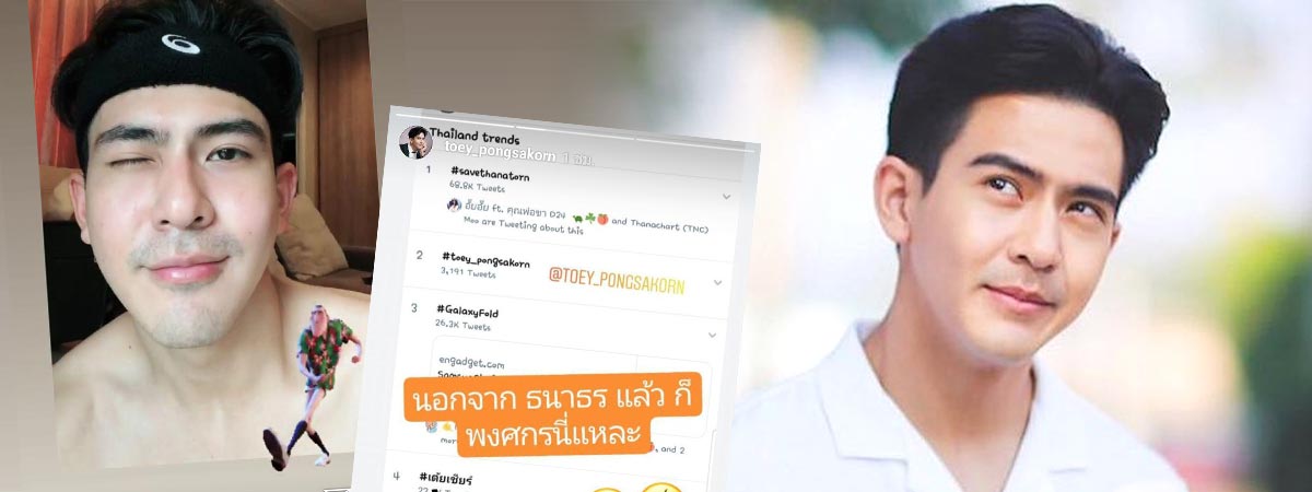 และถึงแม้จะเป็นเพียงการเปลือยอกท่อนบน ที่เห็นแค่ช่วงไหล่แต่ก็กร๊าวใจมาก ๆ พร้อมยิ้มเบา ๆ ขยิบตาทักทายลูกหมี จนแฟน ๆ พากันหวีดร้องหนักมาก นอกจากนี้ยังทำให้ชื่ออินสตาแกรม toey_pongsakorn ขึ้นเทรนด์ทวิตเตอร์ในระดับท็อป 3 อีกต่างหาก เรียกว่า แค่ภาพเดียวก็ทำสะเทือนกันไปทั้งไทม์ไลน์เลยทีเดียว งานนี้แฟน ๆ ต่างบอกว่า แค่ภาพเดียวยังขนาดนี้ ถ้าเผยความแซ่บแบบเต็ม ๆ ให้เห็นทั้งตัวจะสะเทือนกันขนาดไหน