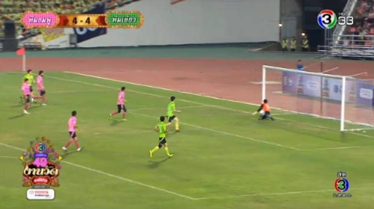 ผลบอล ช่อง 3 สีเขียว เสมอ สีชมพู 7-7 พระเอกชื่อดังหลายคนยิงประตูกันถ้วนหน้า โดยเกรท วรินทร ทำแฮตทริคในเกมนี้ด้วย