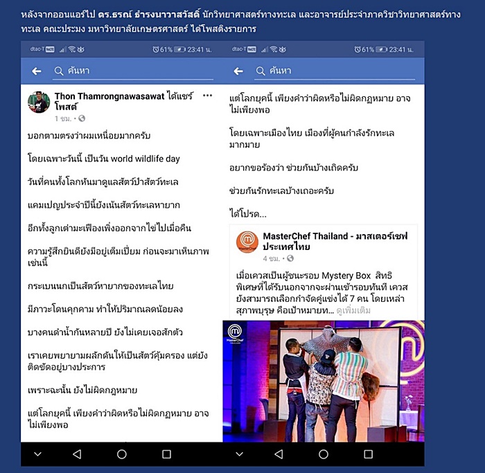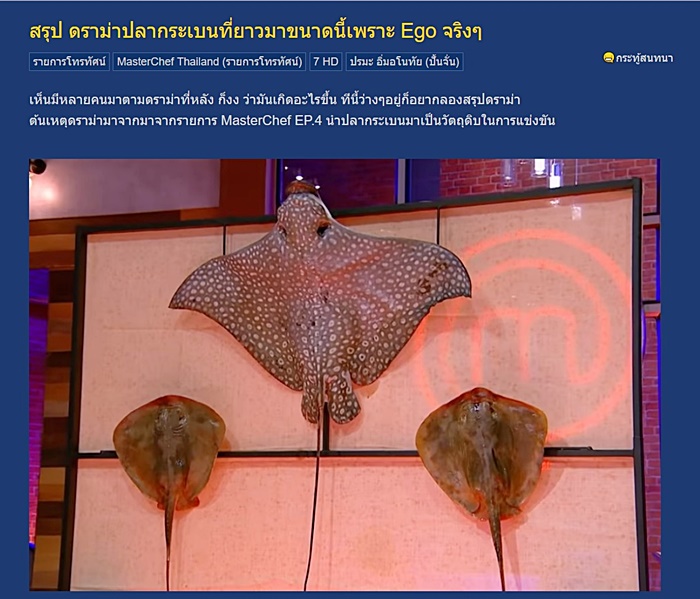 - ดร.ธรณ์ ไม่เห็นด้วย MasterChef ใช้ปลากระเบนเป็นวัตถุดิบ ขอให้รักทะเลไทยบ้าง