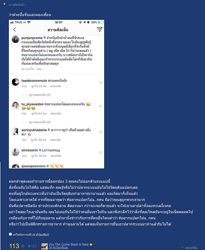 ล็อกอินดังพันทิป สรุปดราม่าปลากระเบน เผยกระแสยาวมาถึงจุดนี้ เพราะอีโก้ของดาราดัง เข้าใจผิดแล้วไม่ยอมแก้ไขและขอโทษ จวก ปั้นจั่น ปรมะ ออกตัวแรงเกิน ชี้ของที่ตัวเองไม่กิน ไม่ใช่ของแปลกเสมอไป และถ้าเป็นรายการช่องตัวเอง คงไม่วิจารณ์แบบนี้