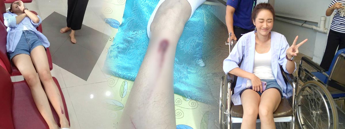 โดยสาว ยีนส์ เกวลิน พลาดเตะโดนเครนกล้อง จนขาซ้ายเป็นแผลยาวฉีกลึก ทีมงานต้องรีบปฐมพยาบาล ก่อนนำตัวส่งโรงพยาบาลด่วน ซึ่งเจ้าตัวก็ได้เผยภาพบาดแผลที่ขาลง IG พร้อมข้อความว่า "Sigh !!! Painful !!!!"