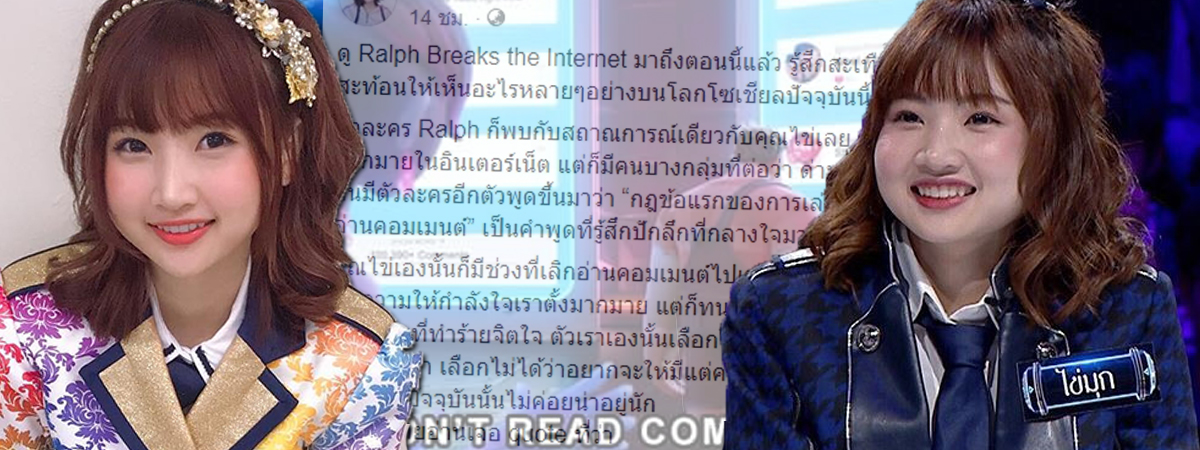 จากที่ดูภาพยนตร์เรื่อง Ralph Breaks the Internet รู้สึกสะเทือนใจมาก ๆ มันสะท้อนให้เห็นหลายอย่างบนโลกโซเชียล ตัวละคร Ralph เจอสถานการณ์เดียวกับไข่มุกเลย มีคนรักมากมาย แต่ก็มีคนบางกลุ่มที่ต่อว่า ด่าทอด้วยถ้อยคำไม่ดี จนมีตัวละครอีกตัวพูดขึ้นมาว่า "กฎข้อแรกของการเล่นอินเทอร์เน็ต คือ ห้ามอ่านคอมเมนต์" เป็นคำพูดที่รู้สึกปักลึกที่กลางใจมาก