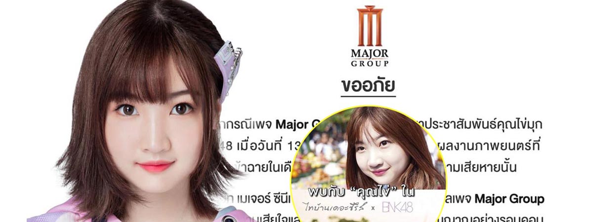 บริษัท เมเจอร์ ซีนีเพล็กซ์ กรุ้ป จำกัด (มหาชน) ผู้ดูแลเพจ Major Group ขอแสดงความเสียใจและสำนึกผิดต่อการขาดวิจารณญาณอย่างรอบคอบ จึงขออภัยเป็นอย่างสูงต่อคุณไข่มุก BNK48 และทีมงานผู้เกี่ยวข้องทั้งหมดของ BNK48 Official