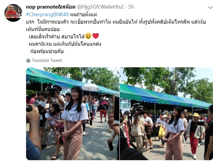 ล่าสุด คุณอิ๊งค์ ผู้จัดการ BNK48 ได้ทวีตข้อความถึงเรื่องนี้ว่า "น้องตามคิว !! และน้องตรวจสอบลำดับของตัวเองในหน่วยก่อนมาใน app..แล้ว และหน่วยเลือกตั้งที่เฌอเลือก คือหน่วยเลือกตั้งล่วงหน้าเขตบางแค คนมาลงน้อย !! ที่เยอะคือหน่วยนอกเขตล่วงหน้า ต่างจังหวัดค่ะ !! คนที่เลือกหลังเฌอ คือ ลุงใส่กางเกงขาสั้น รองเท้าแตะ ก็ไม่ได้เป็น bnk48 ก็เข้าไปได้ค่ะ !!"