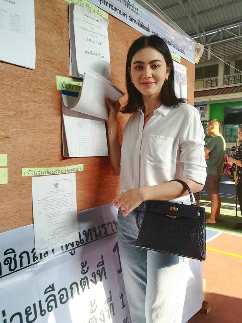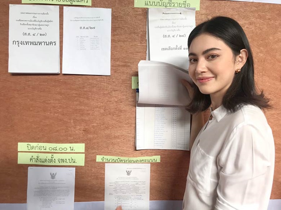 โดยหลังการเลือกตั้ง สาวใหม่ เผยว่า วันนี้ตื่นแต่เช้า รู้สึกตื่นเต้นและดีใจที่ได้ใช้สิทธิ์เลือกตั้งเป็นครั้งแรก ซึ่งก็ทำการบ้านมาบ้าง ดูรวม ๆ ว่าแต่ละพรรคมีข้อดีอย่างไร และตัดสินใจเลือกที่เราคิดว่าน่าจะดี ในฐานะคนรุ่นใหม่ก็หวังว่าการเลือกตั้งครั้งนี้จะช่วยนำพาประเทศให้ดีขึ้น ไม่ว่าจะรุ่นใหม่หรือรุ่นไหนก็ควรออกมาใช้สิทธิ์ใช้เสียงของตัวเอง ในการเลือกตั้งครั้งนี้ รู้สึกว่ามันไม่ได้ยากอย่างที่คิด พร้อมฝากเป็นกำลังใจให้รัฐบาลใหม่ที่จะเข้ามาดูแลประเทศ ขอให้ทำให้เกิดสิ่งดี ๆ และการเปลี่ยนแปลงที่ดีขึ้น